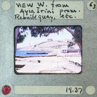View W. From Ayia Irini promitory. Rebuilt quay, etc.