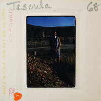Tasoula Standing Next to Sherd Pile