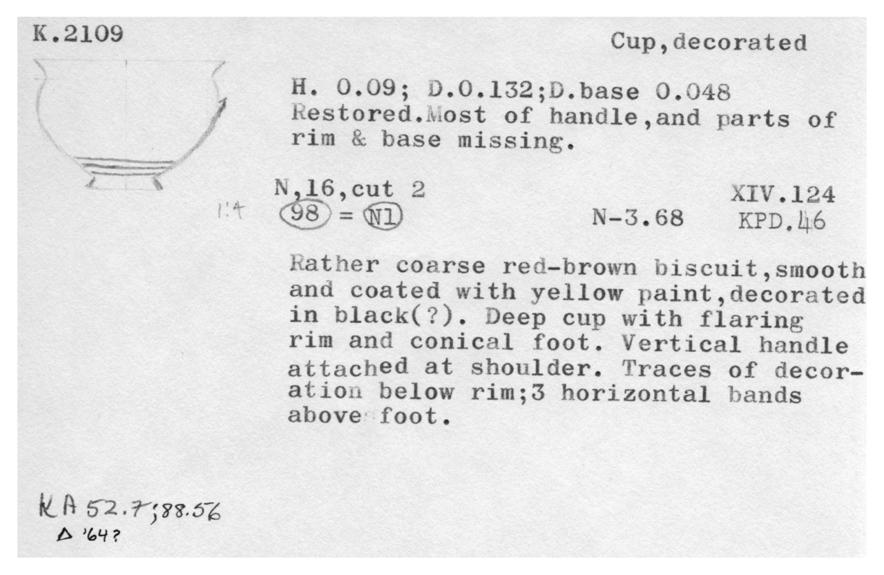 rim and conical foot. Vertical handle