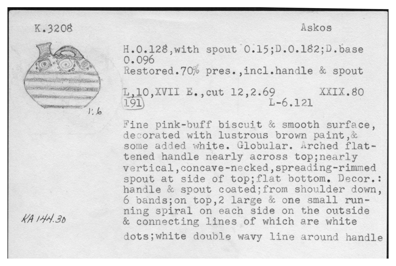 Kea Pottery Card for K.3208