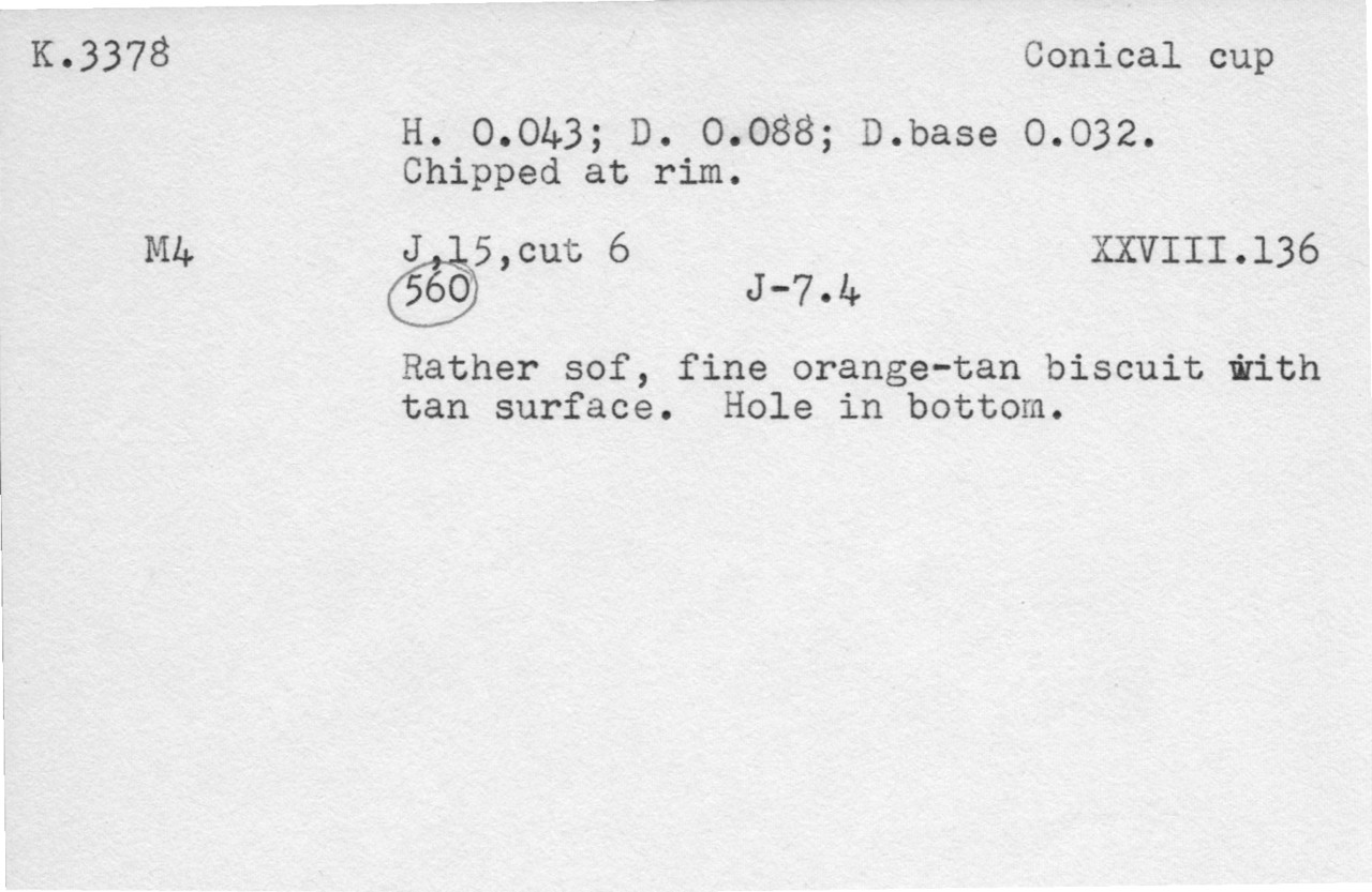 tan surface. Hole in bottom.