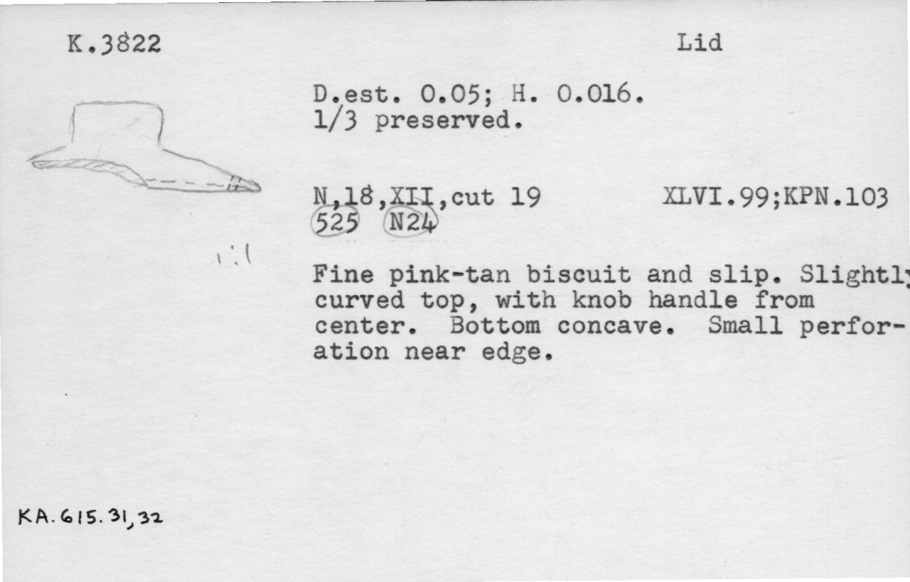 center. Bottom concave. Small perfor-