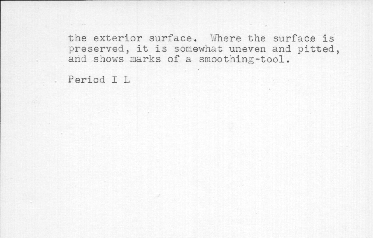 a spout opposite the handle. Rough indenta-