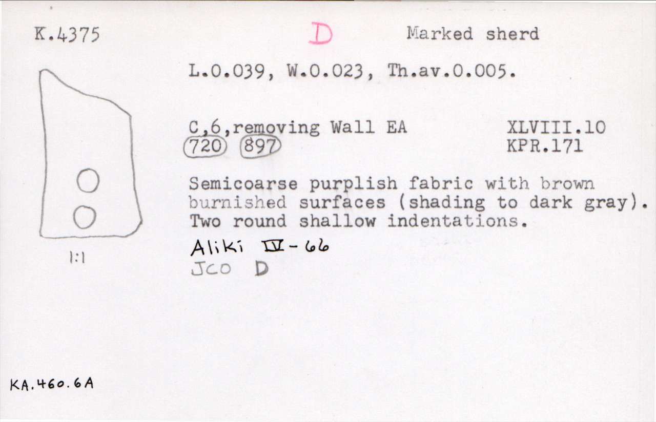 Kea Pottery Card for K.4375