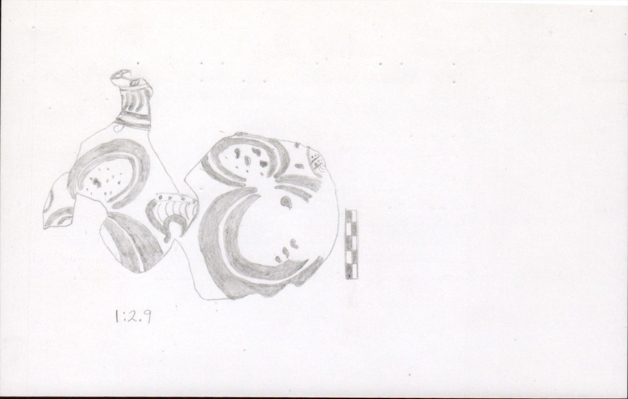 Fine buff fabric and slip. Decorated in