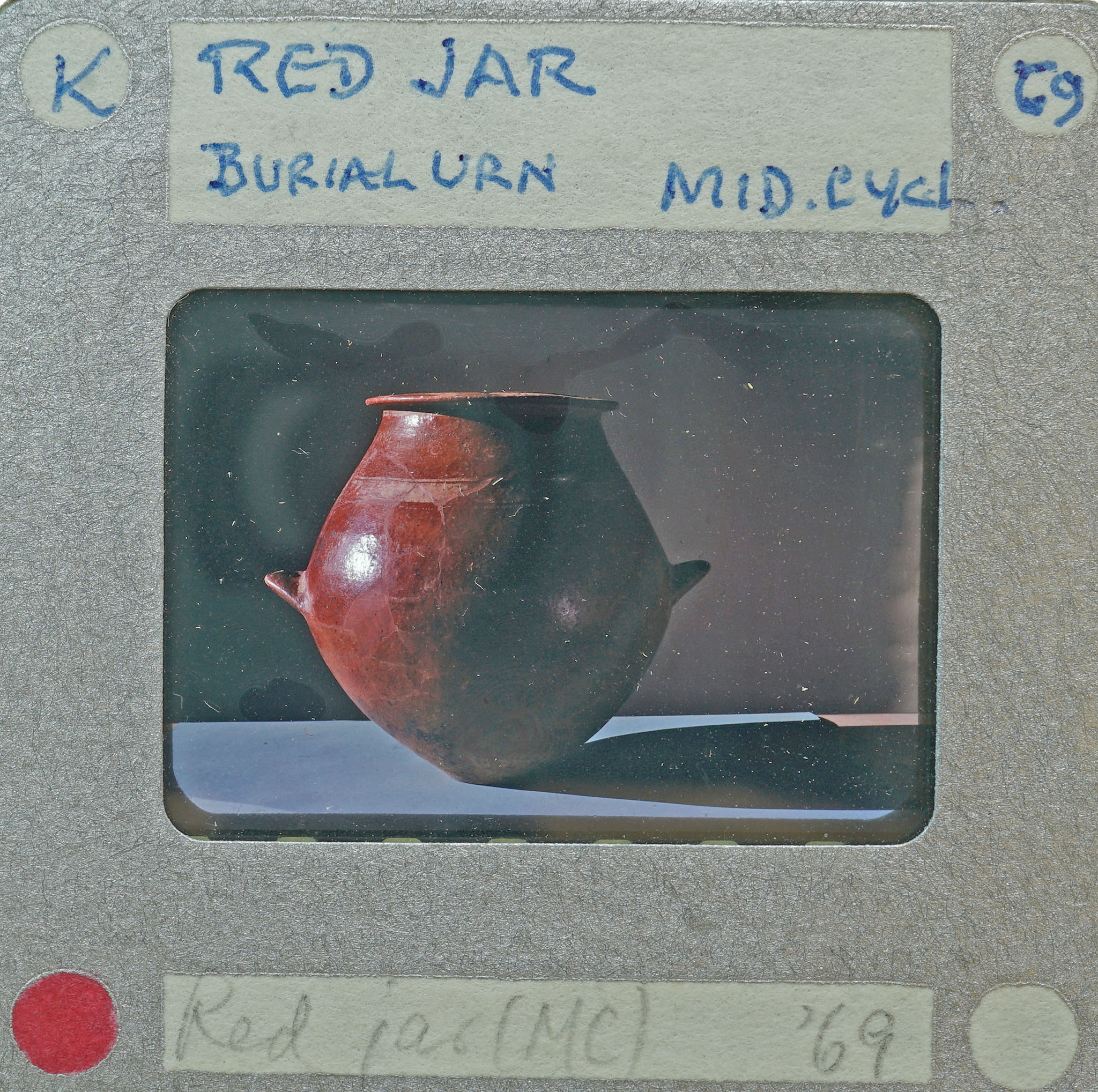 - Frame inscribed: K Red Jar Burial Urn Mid. Cycl. 69.