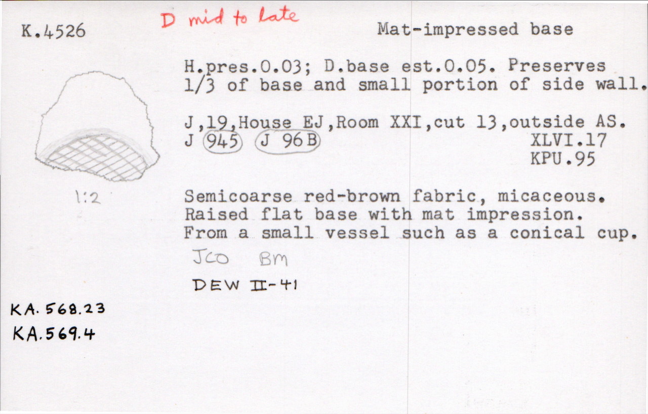 Kea Pottery Card for K.4526