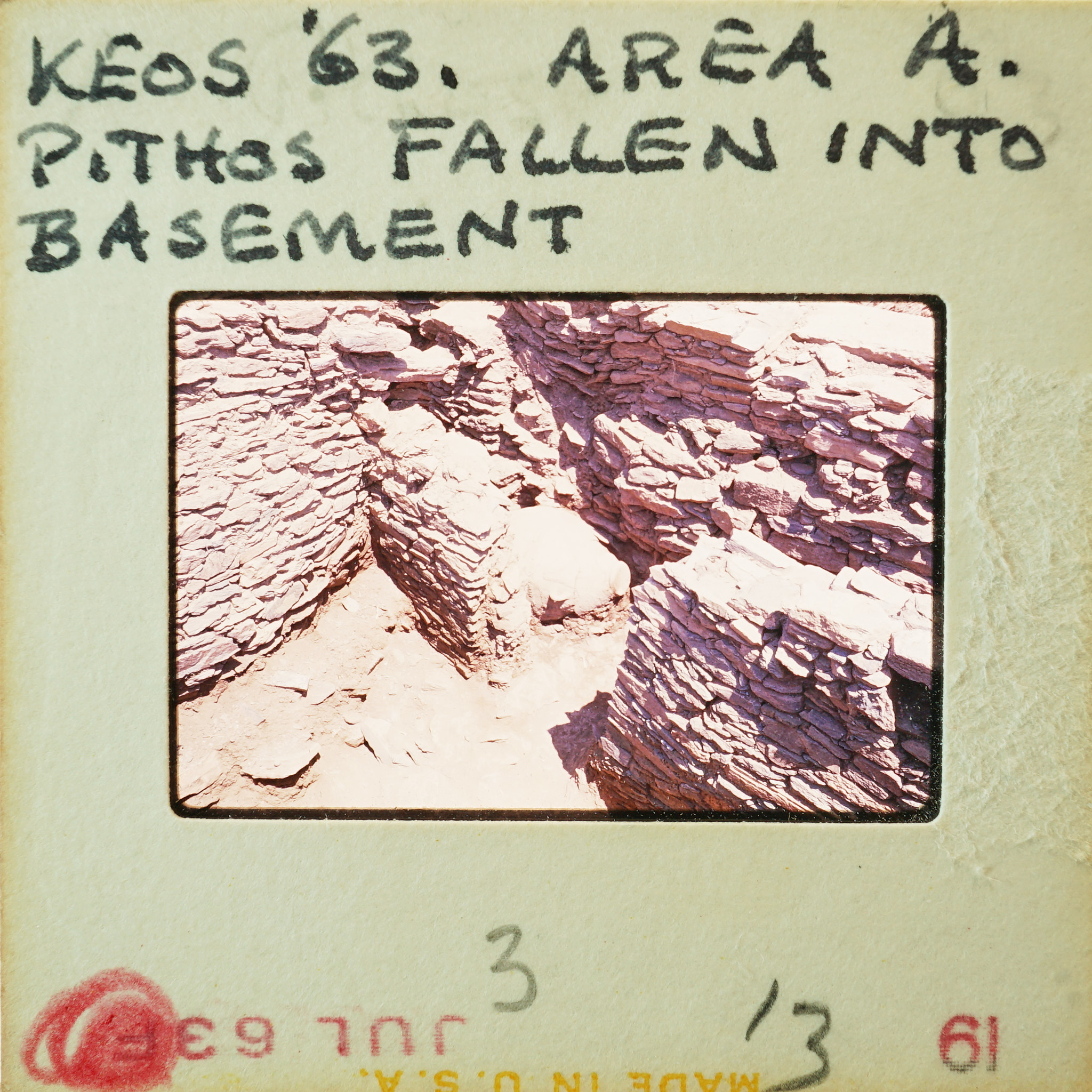 - Frame inscribed: KEOS '63 Area A. Pithos Fallen Into Basement 3 13.