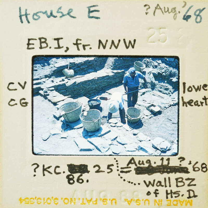 Frame inscribed: House E EB.I, fr. NNW ?Aug. '68 lower hearth CV CG ?KC.2586. Aug.11? '68 wall BZ of HS.D.