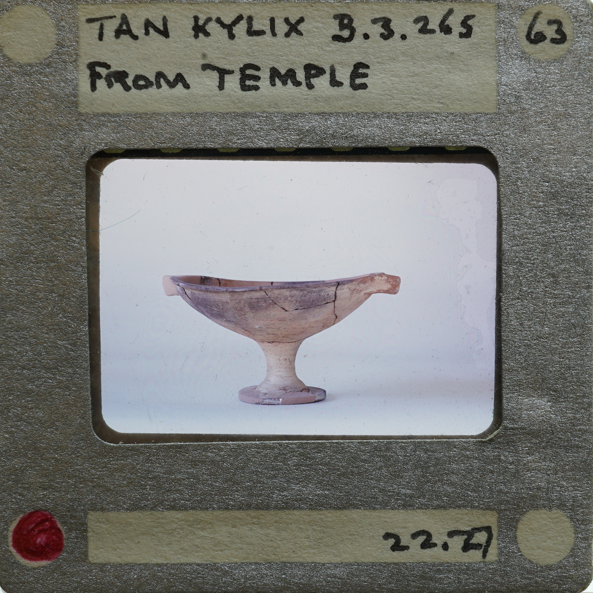 - Frame inscribed: Tan Kylix 3.3.265 From Temple 63 22.27.