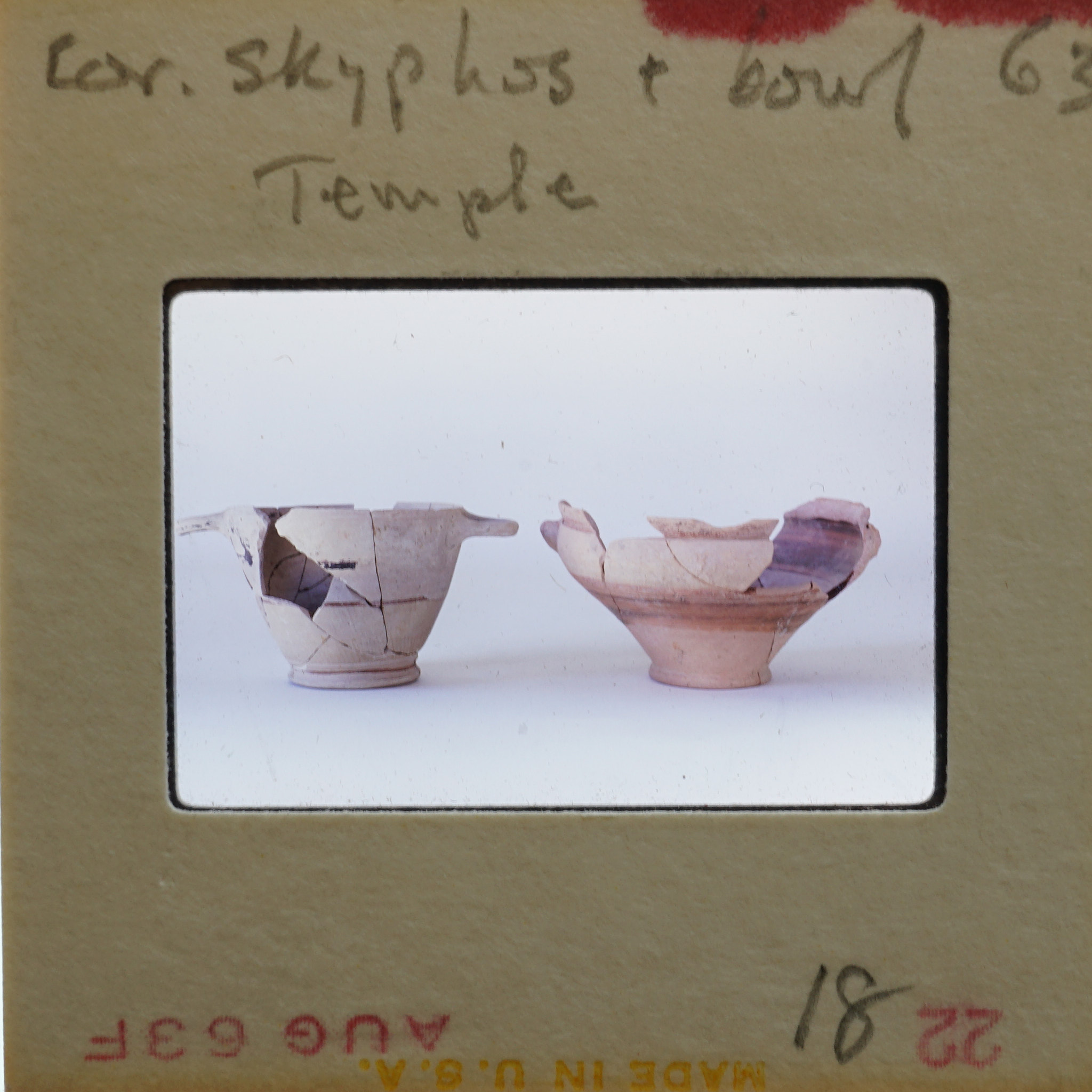 - Frame inscribed: Cor. Skyphos + bowl Temple 18.
