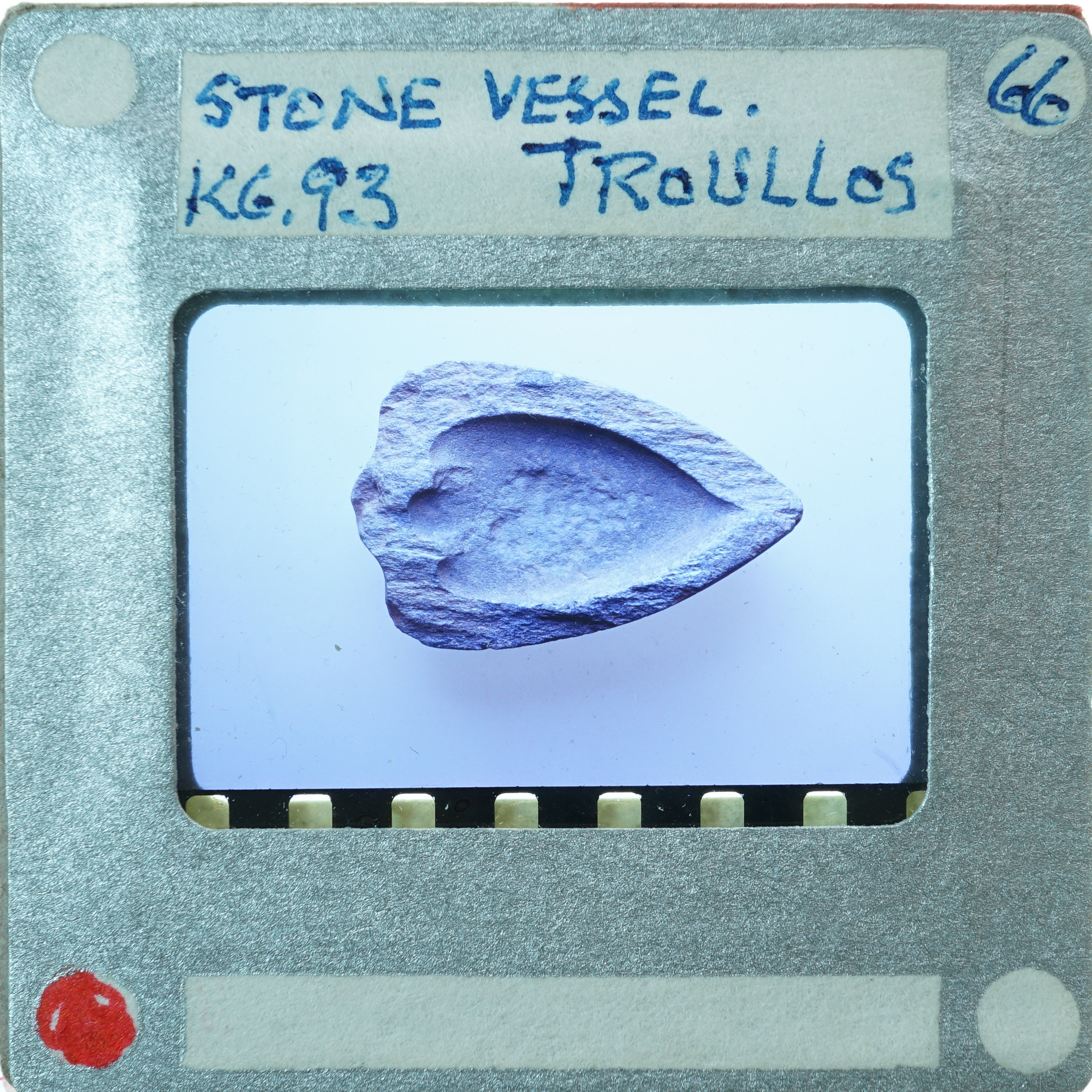 - Frame inscribed: Stone Vessel K6.93 Troullos.