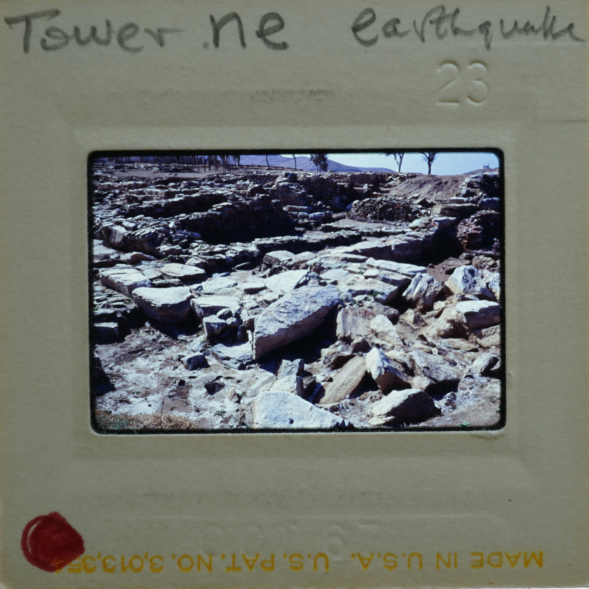 - Frame inscribed: Tower N.E. earthquake.