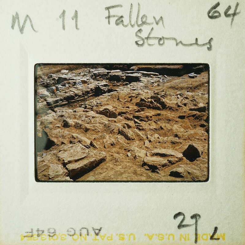 - Frame inscribed: Area M 11 Fallen Stones 64 29.