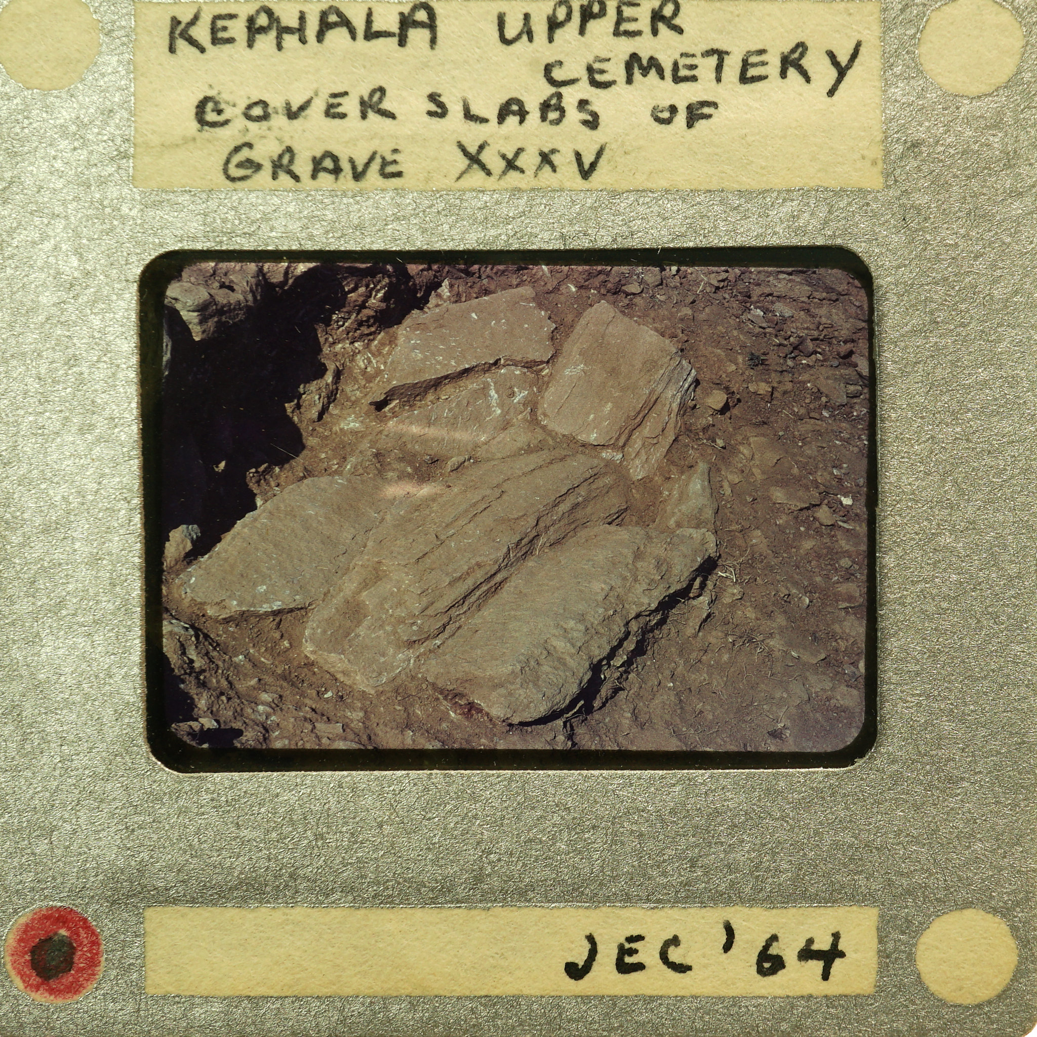 - Frame inscribed: Kephala Upper Cemetery Cover Slabs of Grave XXXV JEC '64.