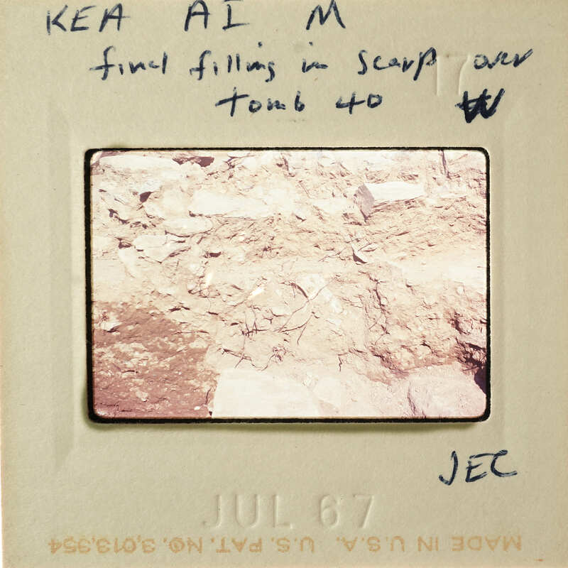 - Frame inscribed: Kea AI M Final Filling in Scarp over Tomb 40 From W JEC.