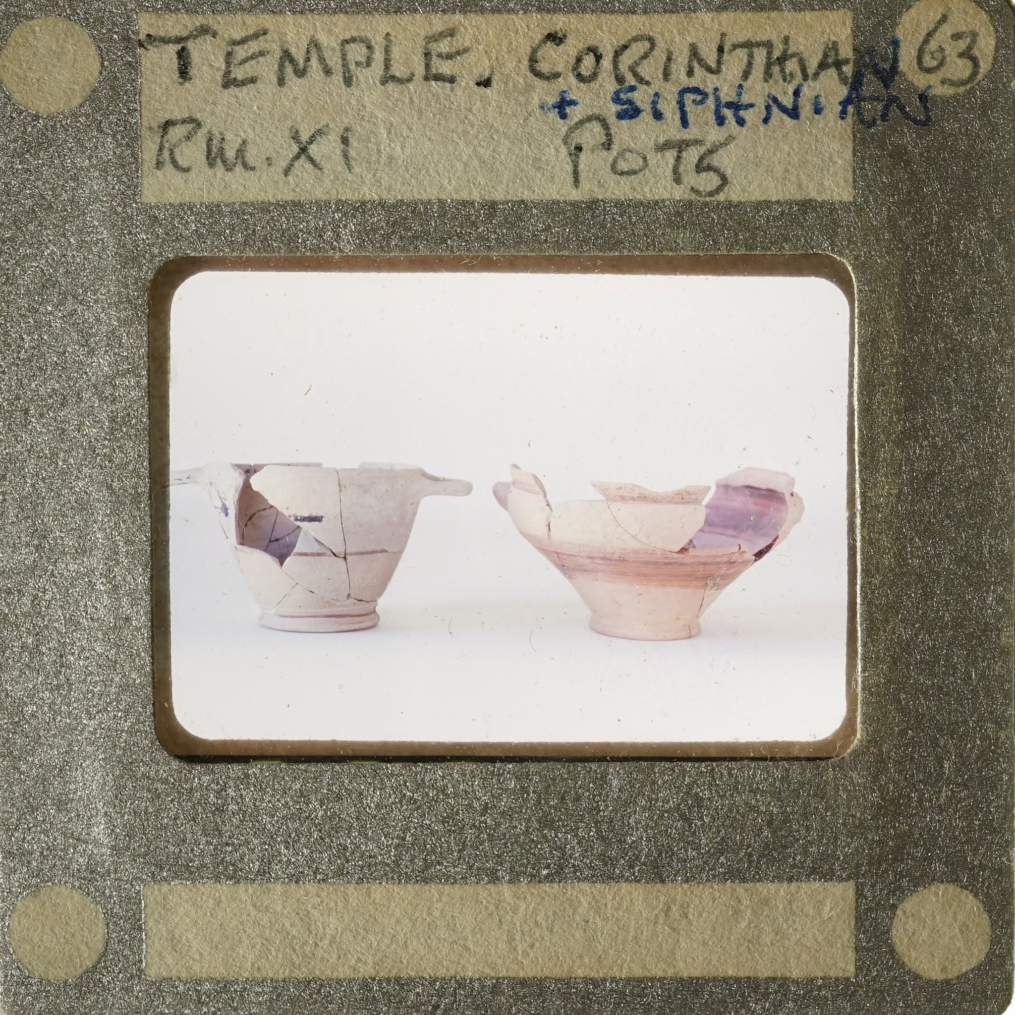 - Frame inscribed: Temple Rm. XI Corinthian + Sisyphian Pots 63.