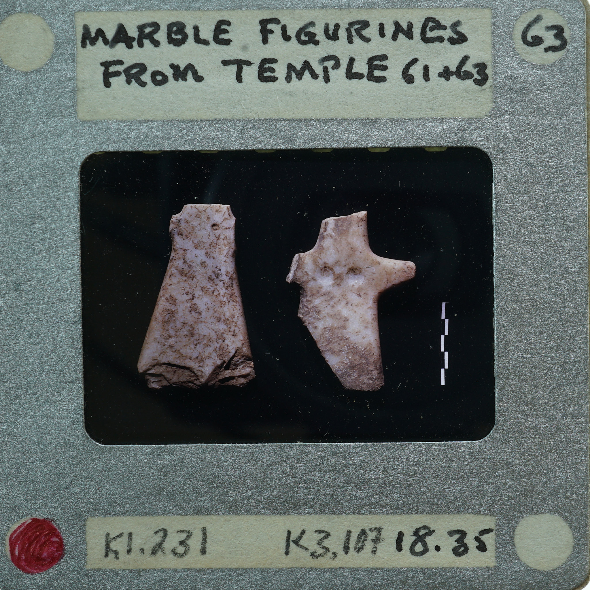 - Frame inscribed: Marble figurines from temple 61 + 63 K1.231 K3.107 18.35.
