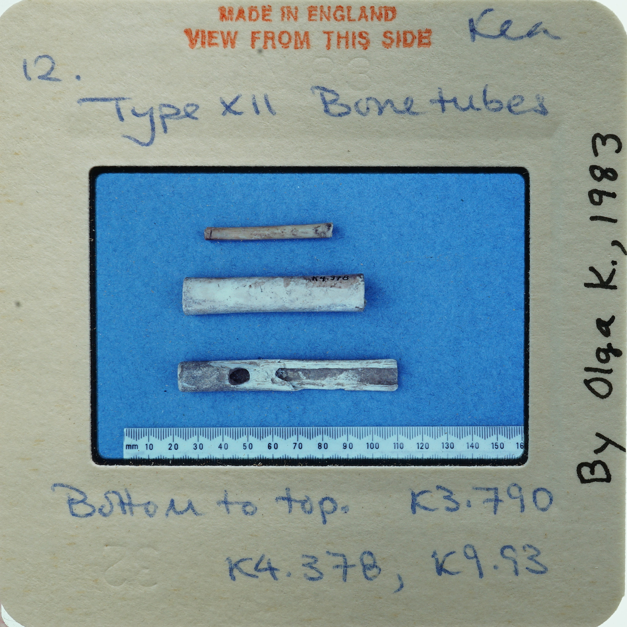 - Frame inscribed: 12. Type XII Bone tubes Kea bottom to top K3.790 K4.378, K9.93 By Olga K., 1983.