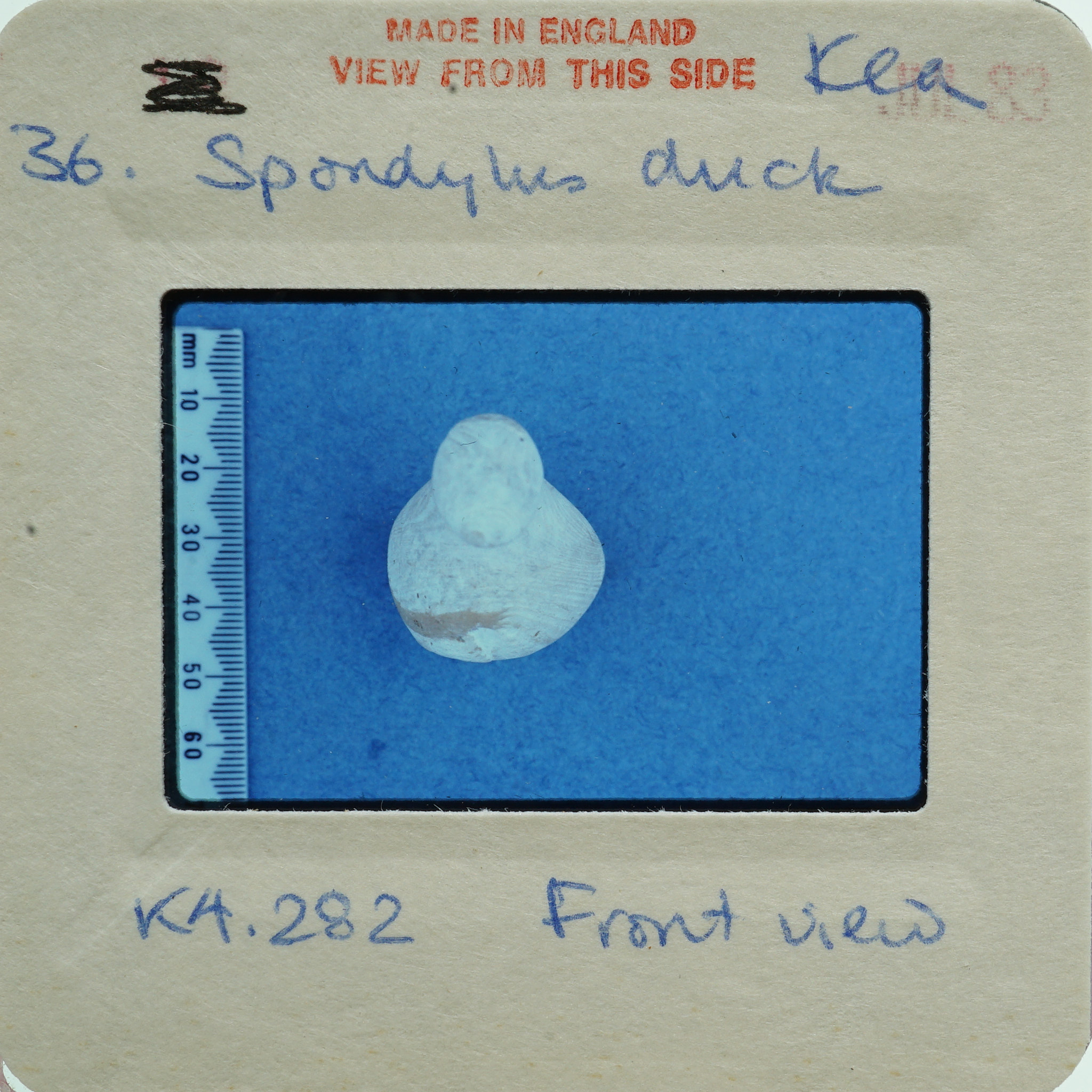 - Frame inscribed: Spondylus duck K4.282 front view.