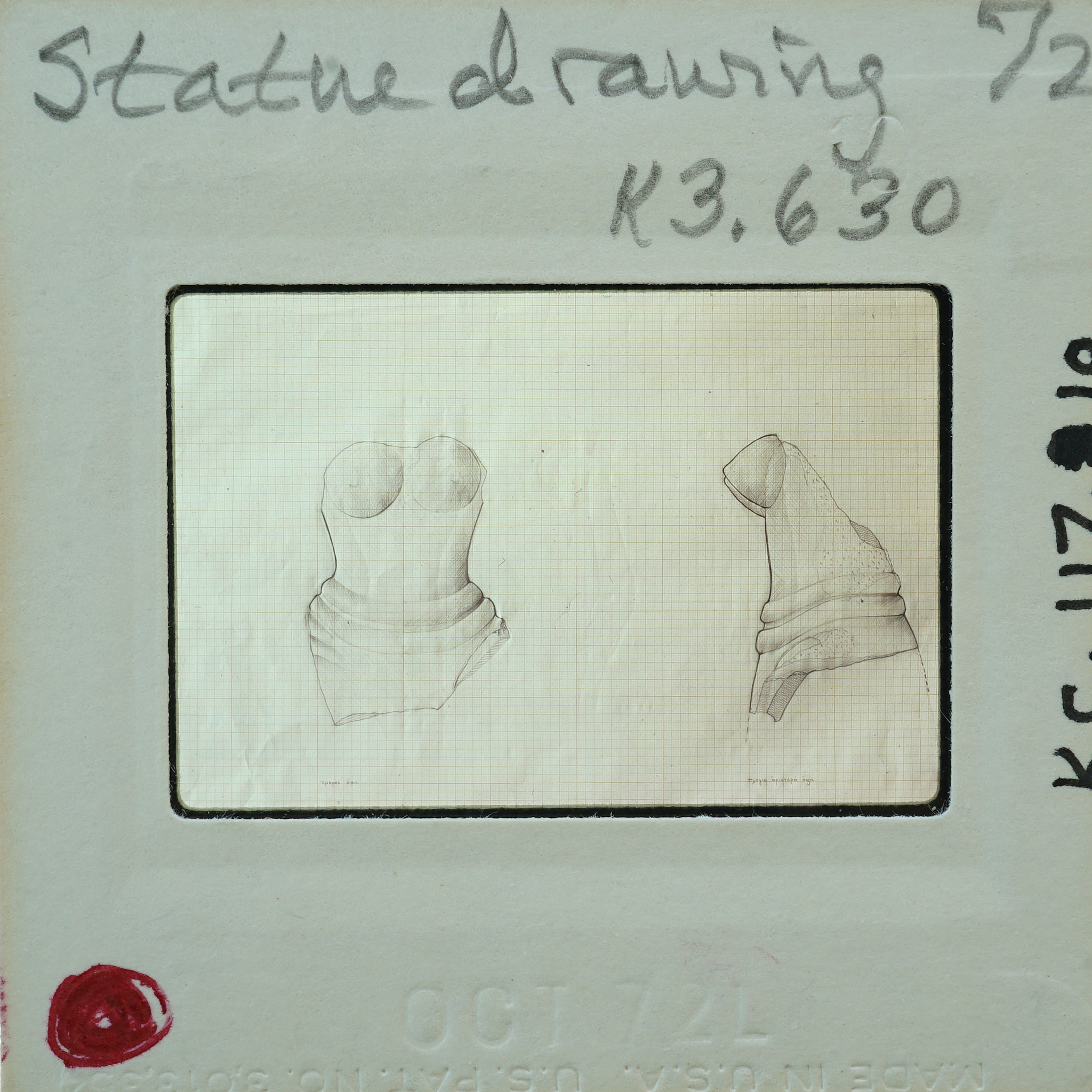 - Frame inscribed: Statue drawling K3.630 72.