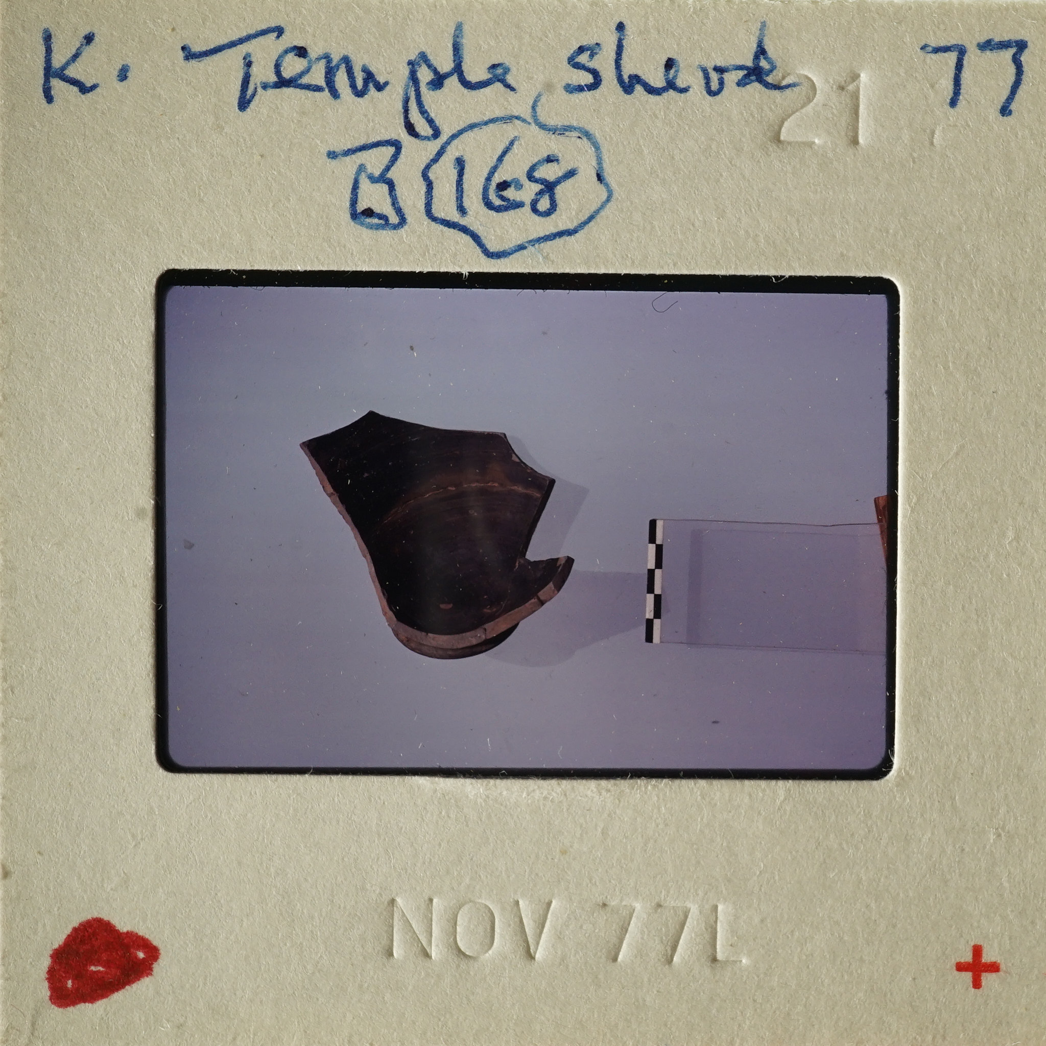 - Frame inscribed: K. Temple sherd 77 B168.