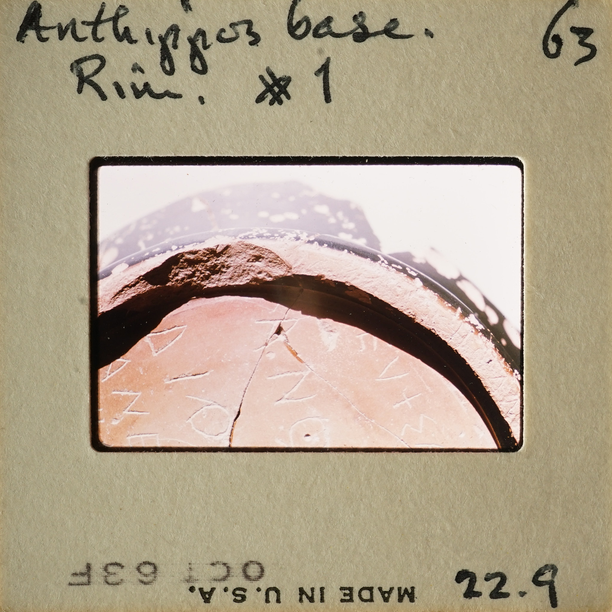 - Frame inscribed: Anthippos base. 63 Rim. #1 22.9.