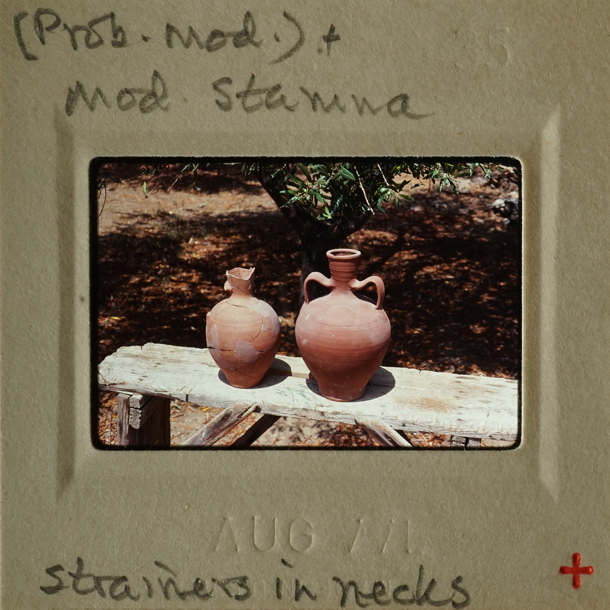 - Frame inscribed: (Prob. mod.) + mod stamna strainers in necks.