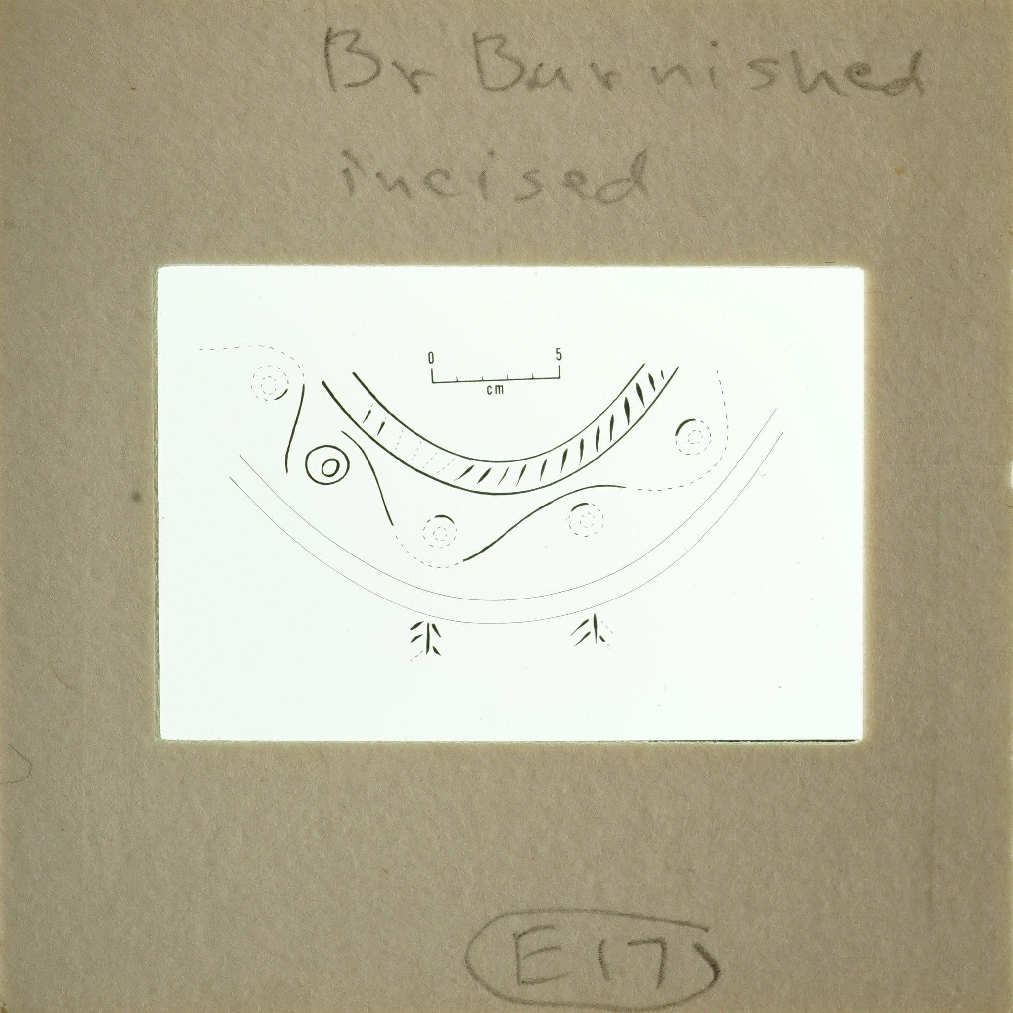 - Frame inscribed: Br Burnished incised E17.