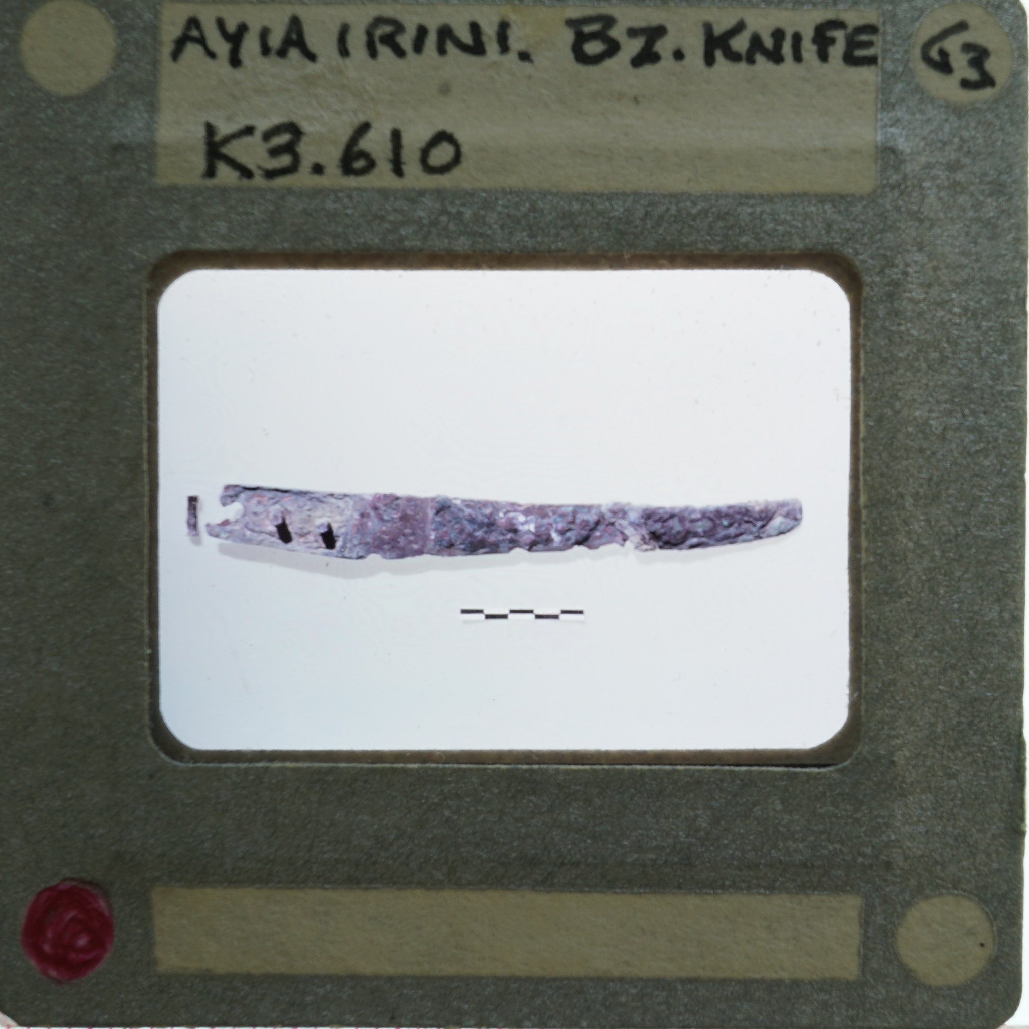 - Frame inscribed: Ayia Irini Bz. knife K3.610.