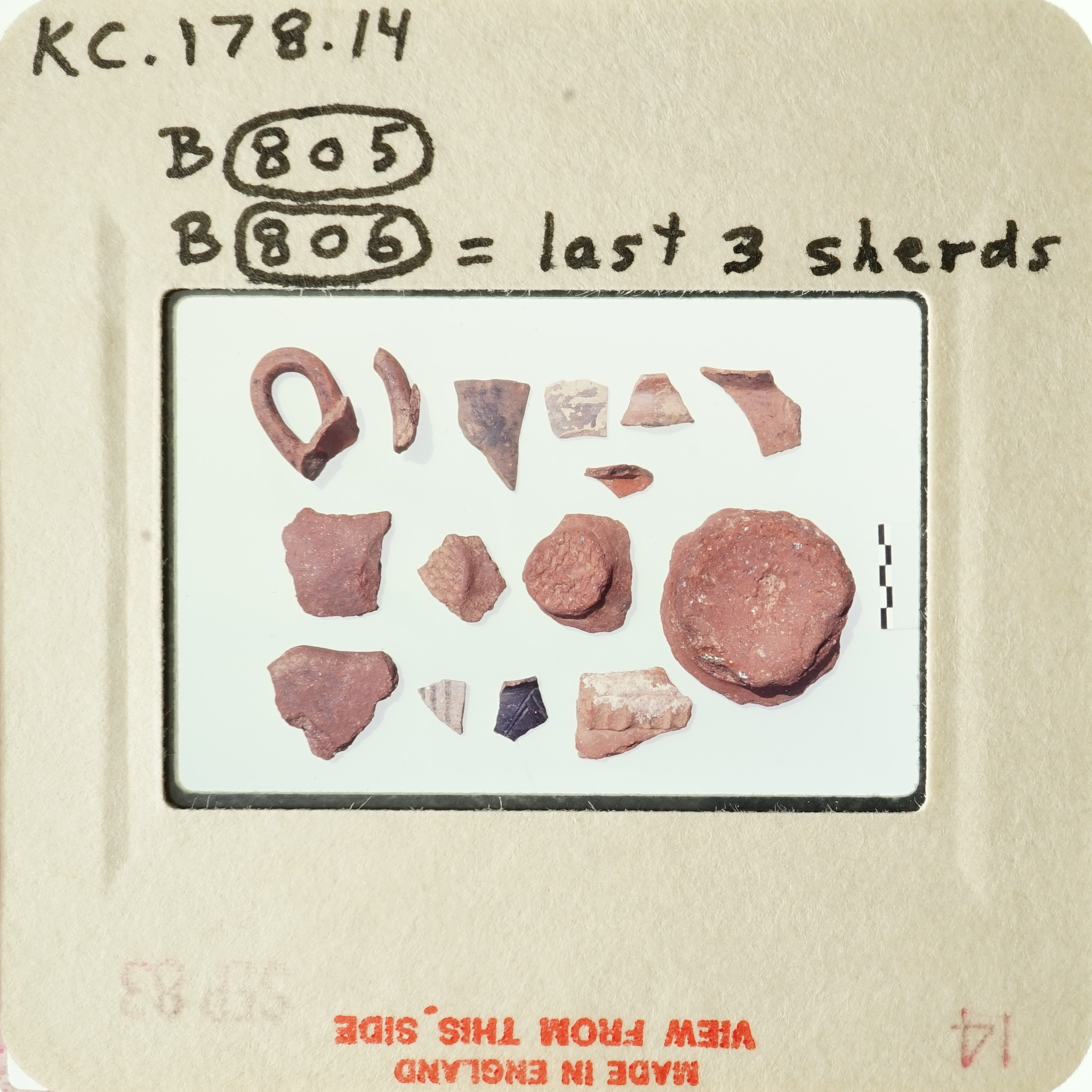- Frame inscribed: KC.178.14 B(805) B(806) = last 3 sherds.
