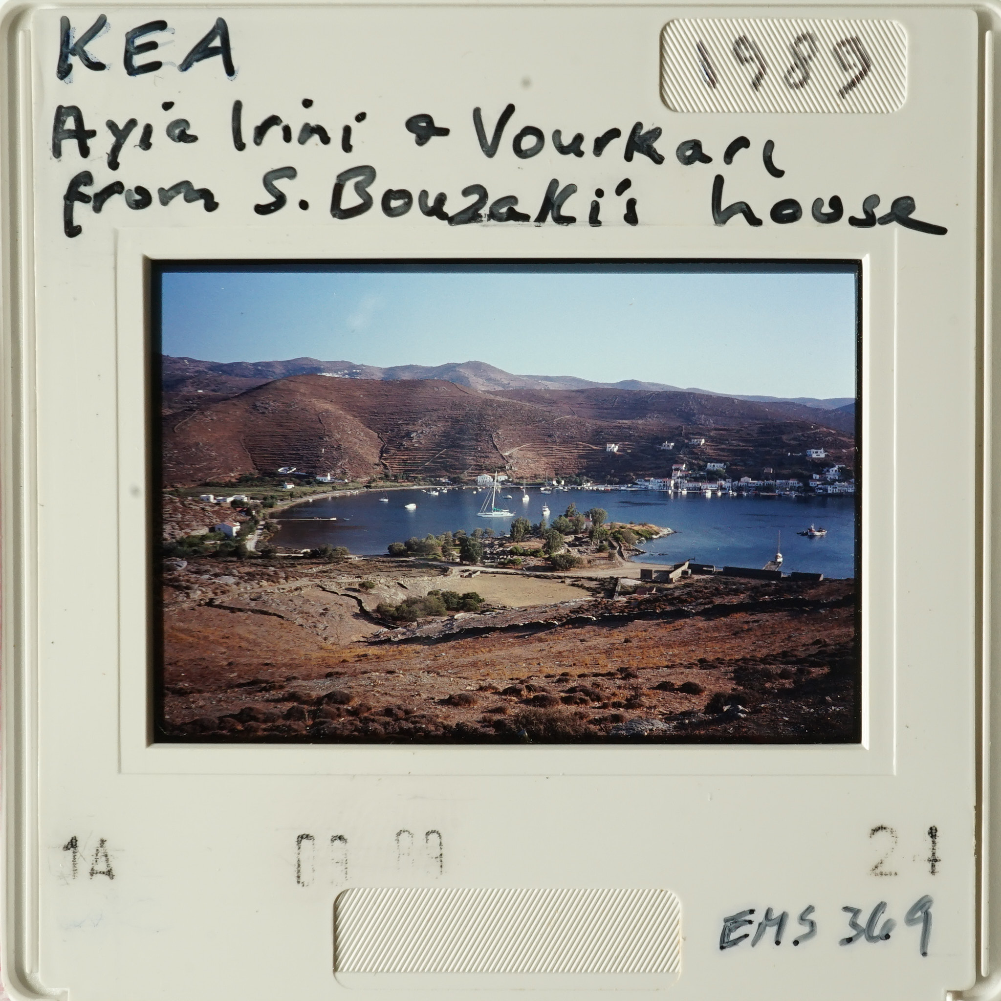 - Frame inscribed: KEA Ayia Irini & Vourkari from S. Bouzaki's House 1989 EMS 369.