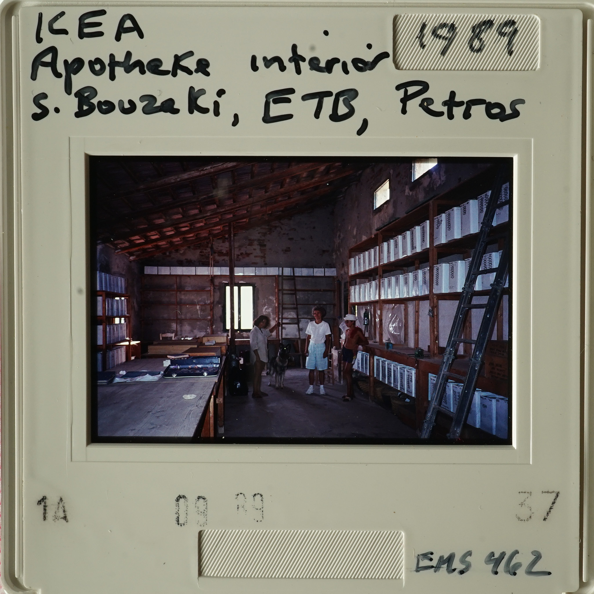Frame inscribed: KEA 1989 Apotheke interior S. Bouzaki, ETB, Petras EMS 462.