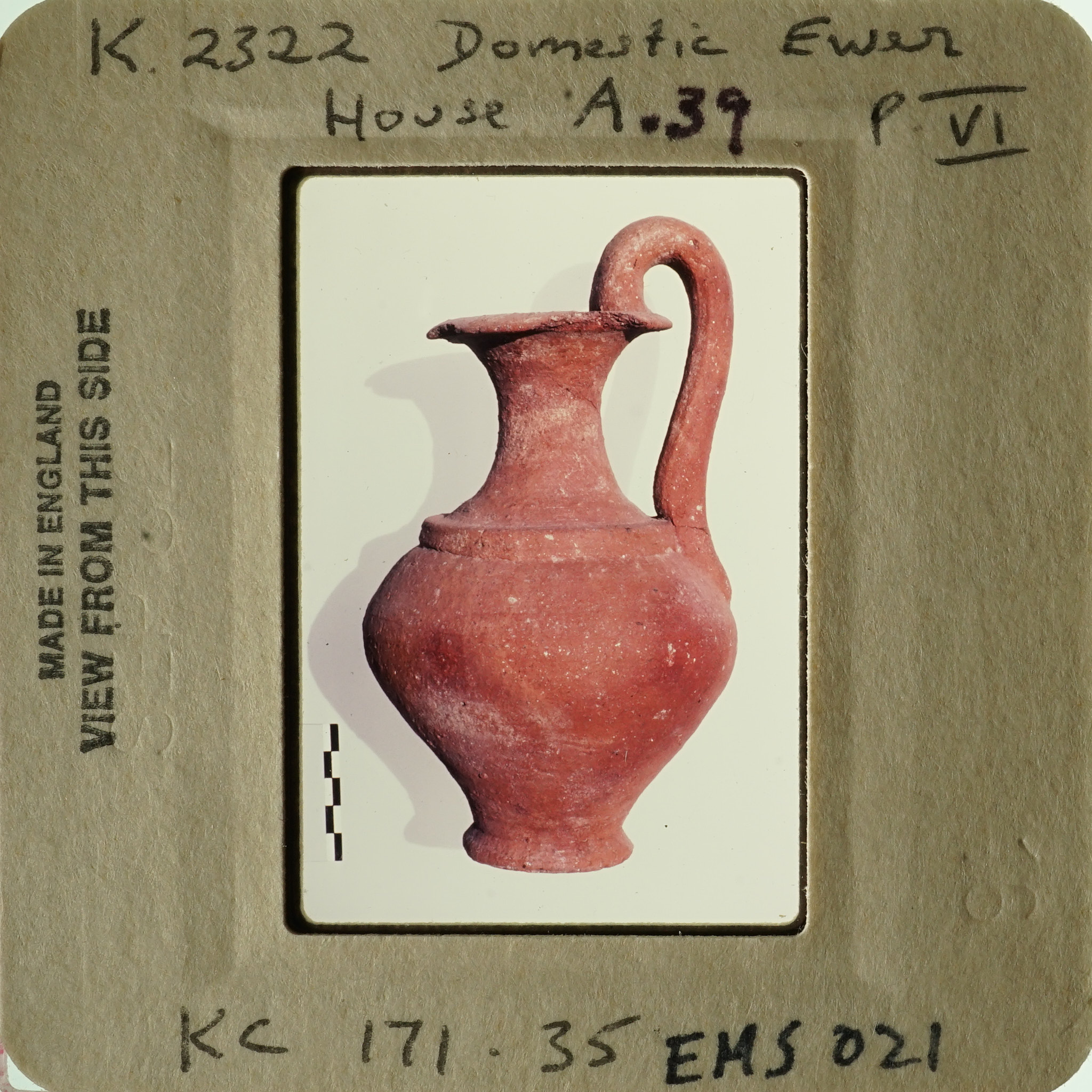 - Frame inscribed: K.2322 Domestic Ewer House A.39 P.VI KC.171.35 EMS 021.