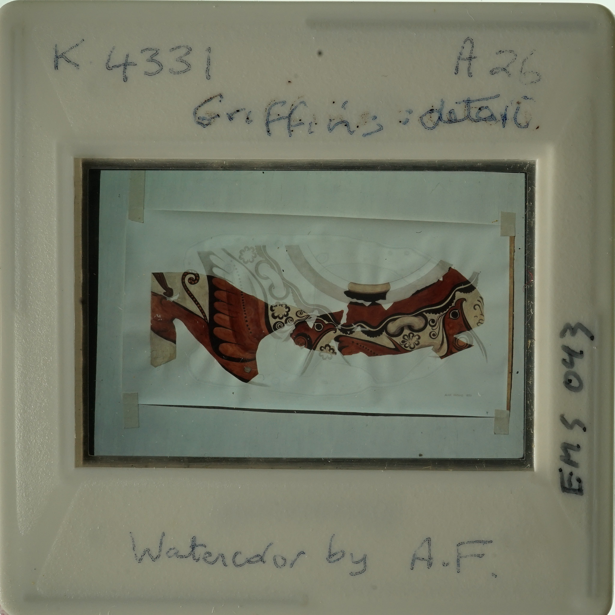 - Frame inscribed: K.4331 A25 Griffin's detail Watercolor by A.F. EMS 043.