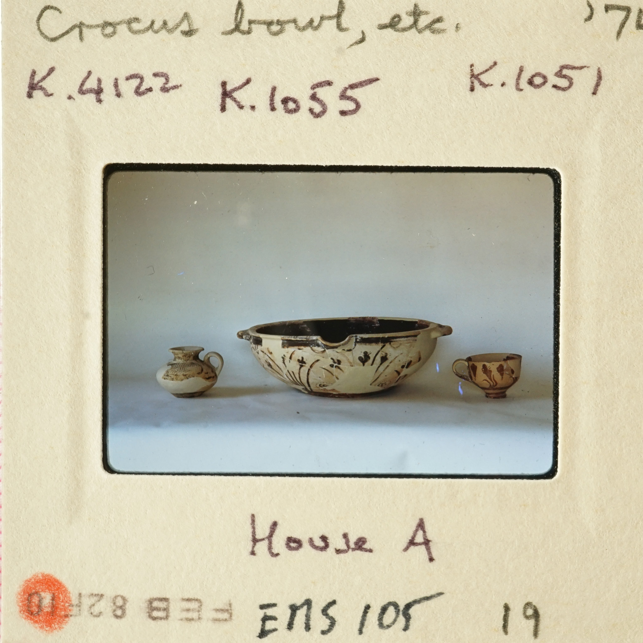 - Frame inscribed: Crocus bowl, ect. '74 K.4122 K.1055 K.1051 House A EMS 105 19.