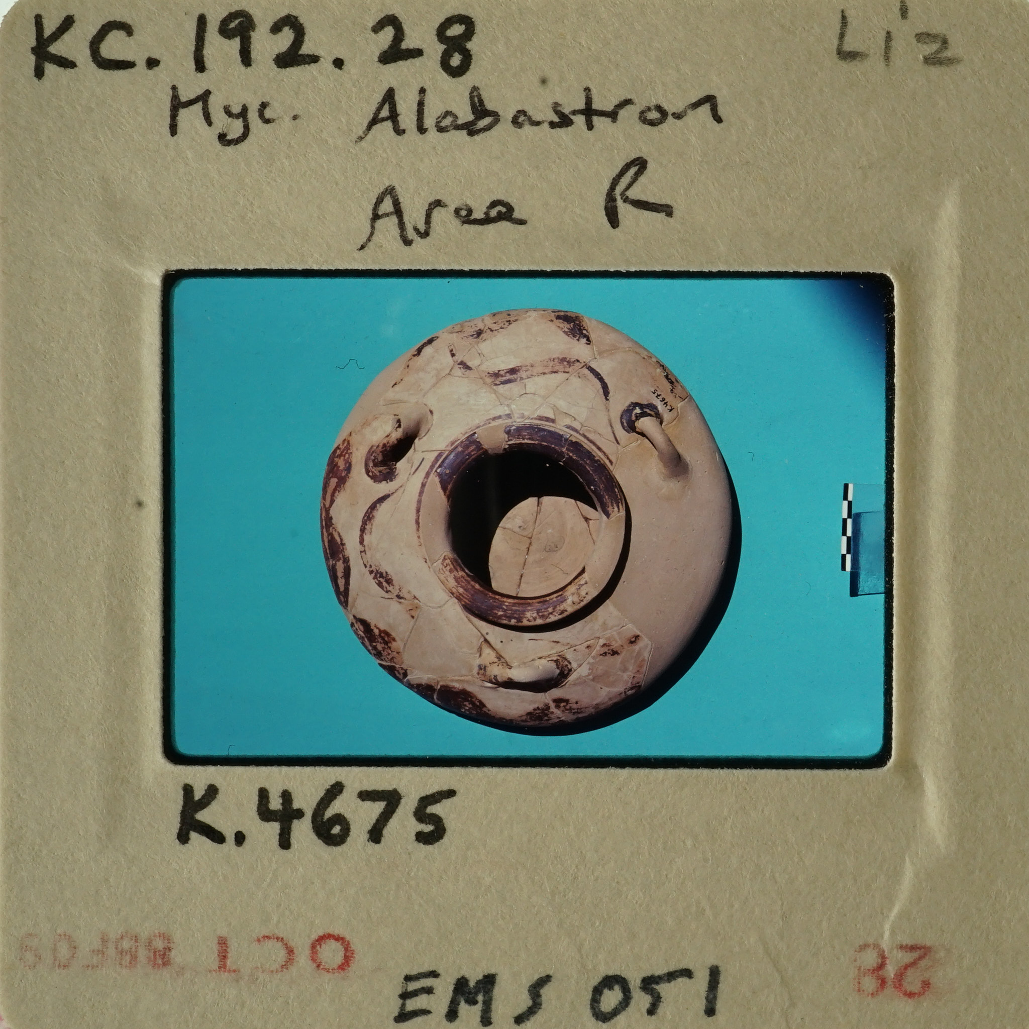- Frame inscribed: KC. 192.28 Myc. Alabastron Area R Liz K.4675 EMS 051.