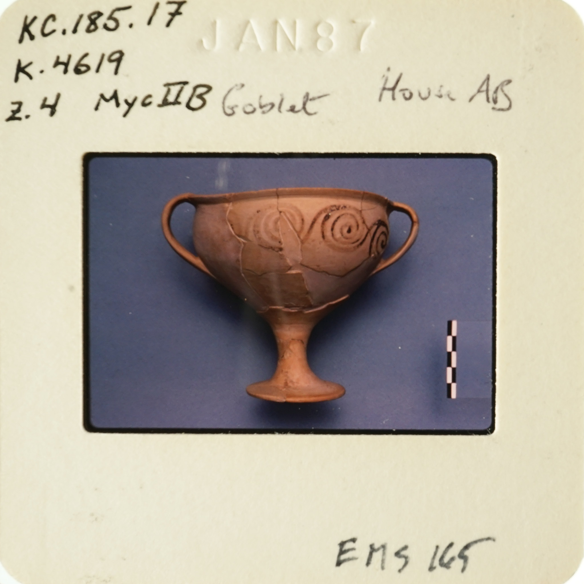 - Frame inscribed: KC.185.17 K.4619 z.4 MycIIB Goblet House AB EMS 165.