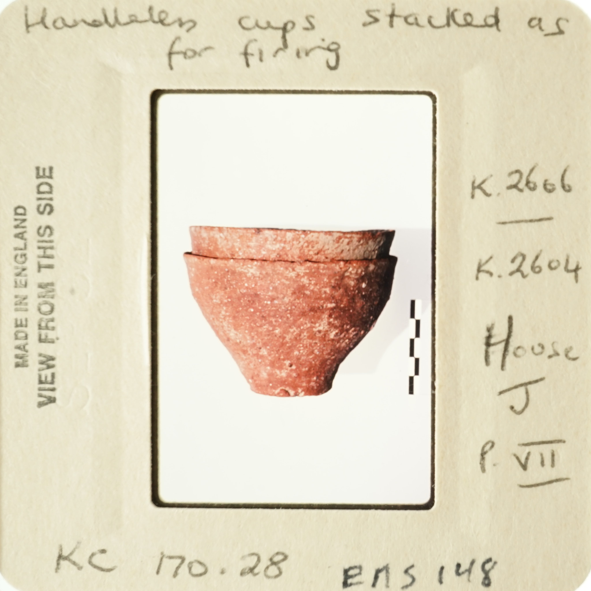 Frame inscribed: Handleless cups stacked as for firing K.2606 K.2604 House J P.VII KC.170.28 EMS 148.