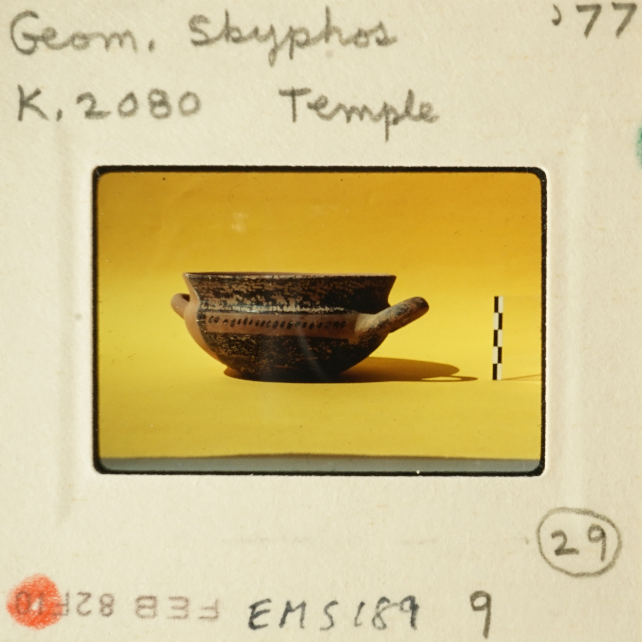 - Frame inscribed: Geom. skyphos '77 K.2080 Temple EMS 189 9 29.
