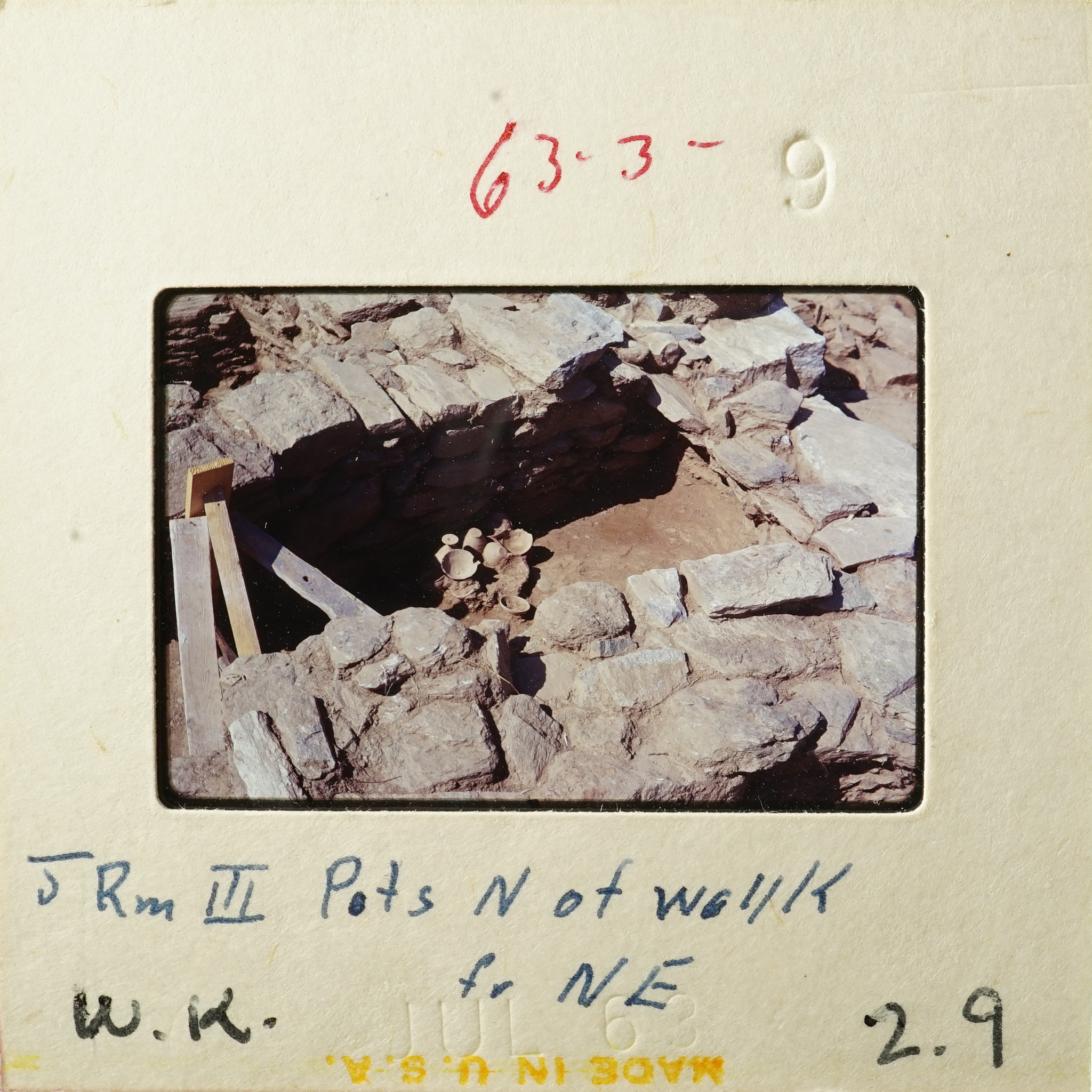 - Frame inscribed: J Rm III Pots N of wall K fr NE W.K. 2.9.