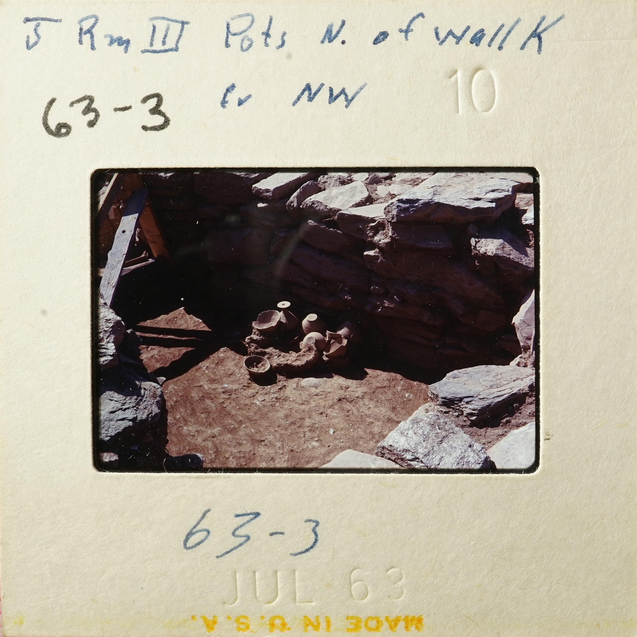 - Frame inscribed: J Rm III Pots N. of wall K fr NW 63-3 63-3.
