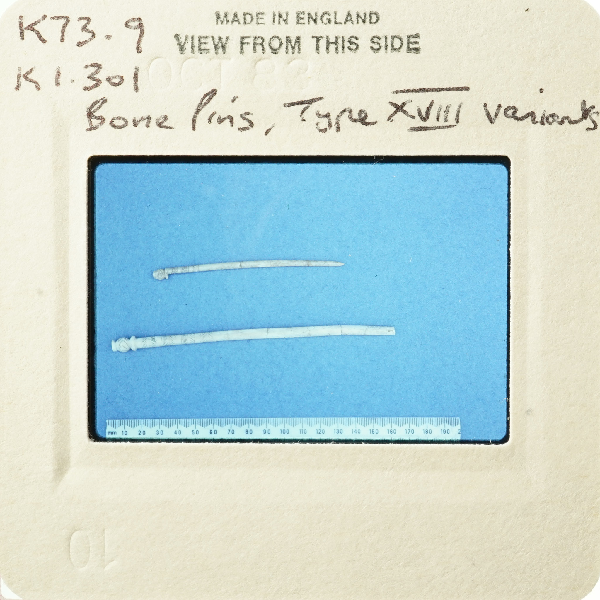 - Frame inscribed: Bone Pins, Type XVIII Variants K73.9, K1.301.