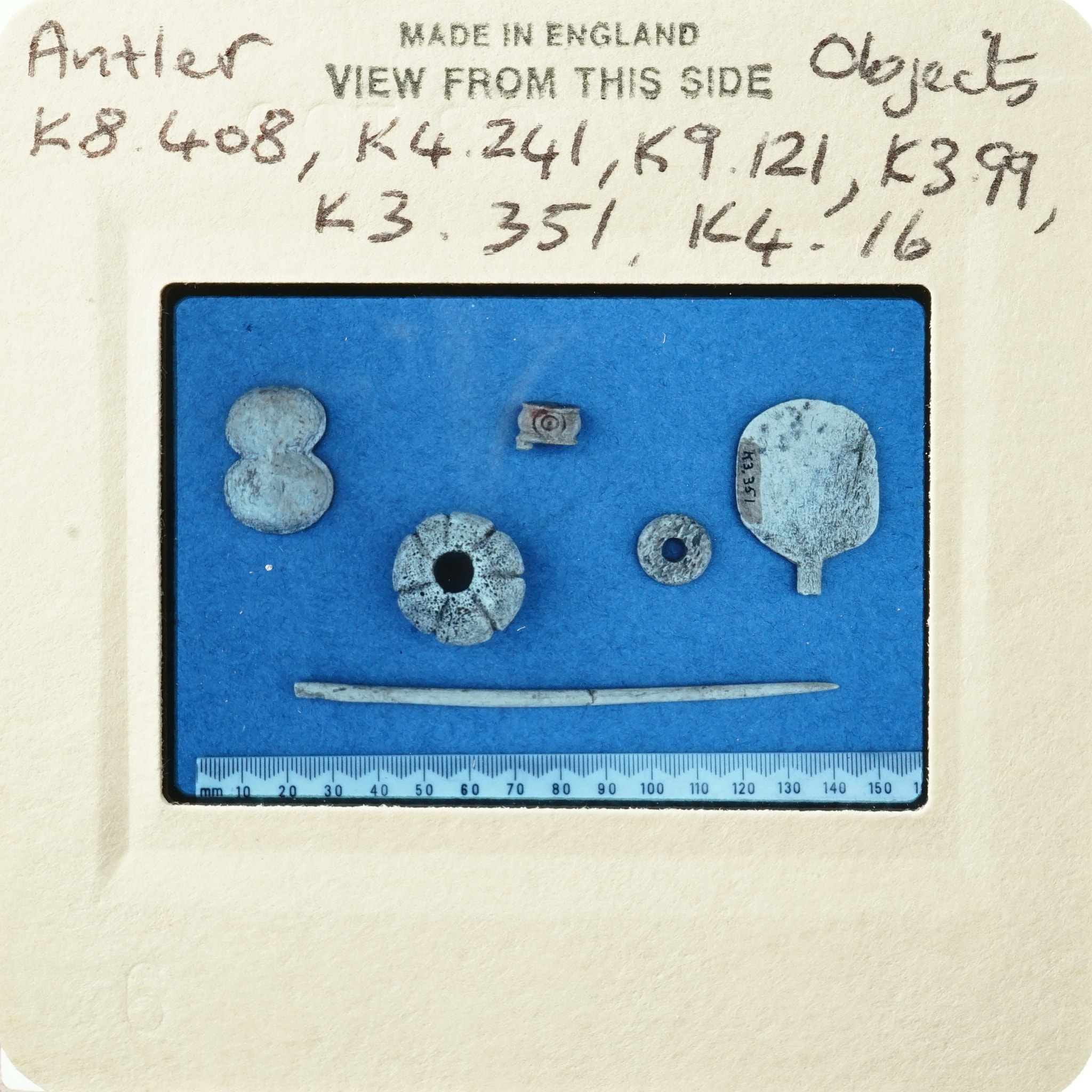 Frame inscribed: Antler Objects K8.408, K4.241, K9.121, K3.99, K3.351, K4.16.