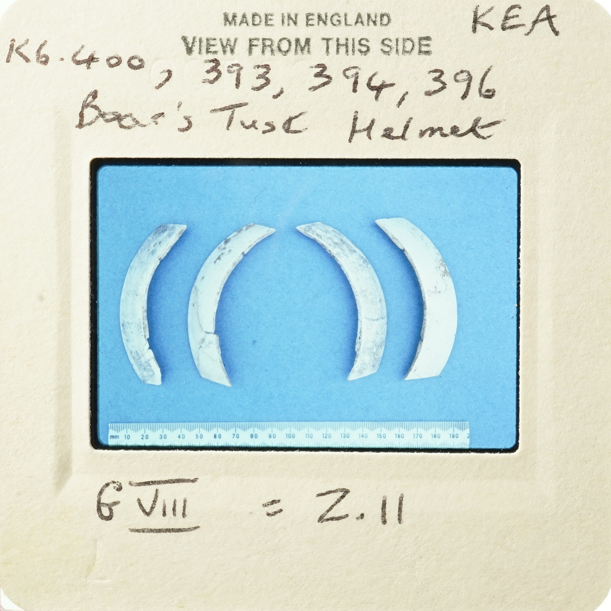 Frame inscribed: Boar's Tusk Helmet 400, 393, 394, 396 KEA G VIII = Z.11.