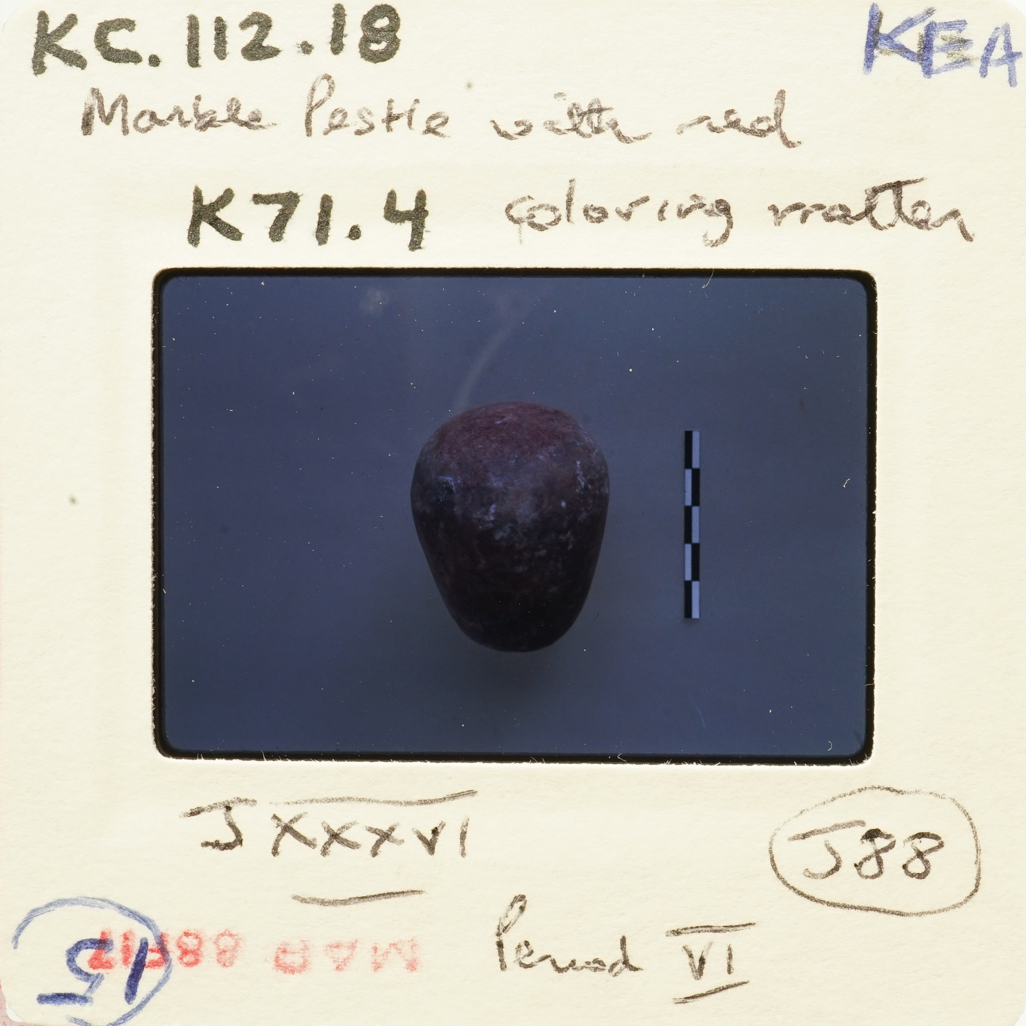 Frame inscribed: K71.4 Marble Pestle with Red Coloring Matter KC.112.18 KEA J XXXVI. Period VI. J88 15.