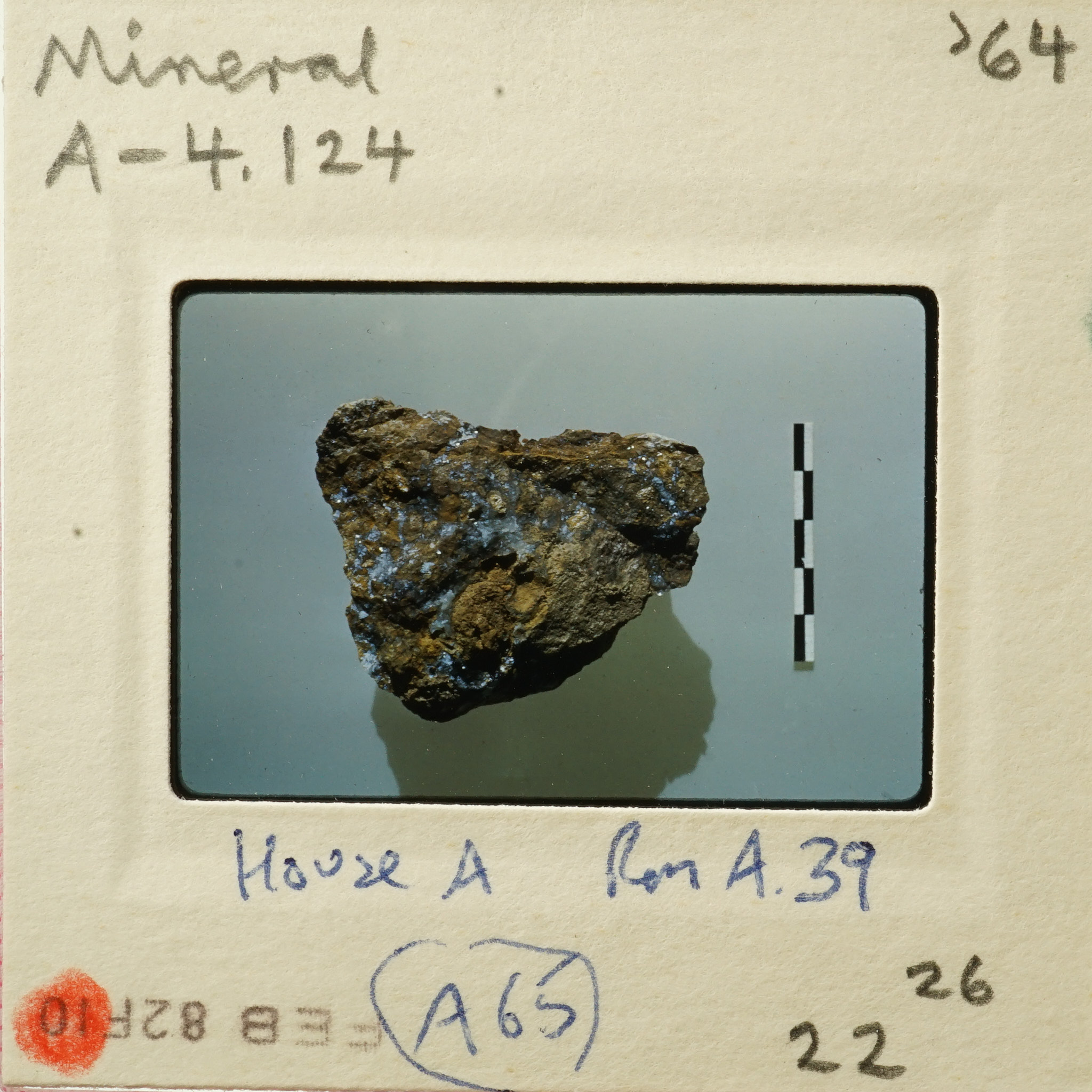 - Frame inscribed: Mineral A-4.124 House A Room A.39 '64 26 22 (A65).