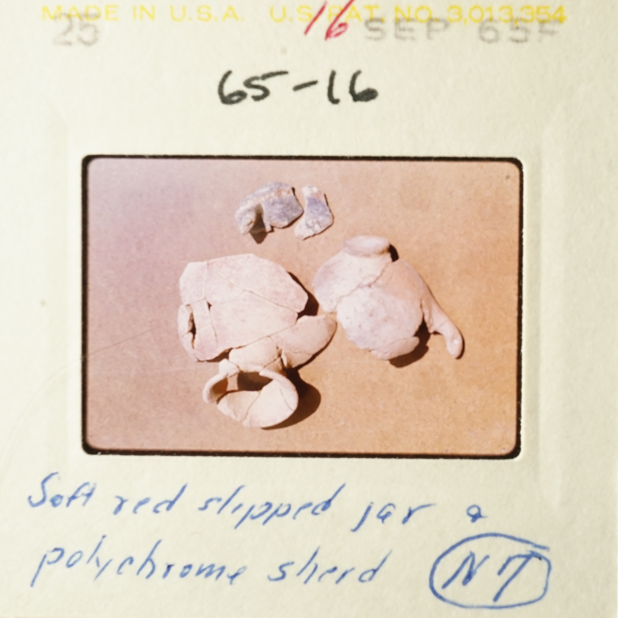 - Frame inscribed: Soft red slipped jar & polychrome sherd N7 65-16.