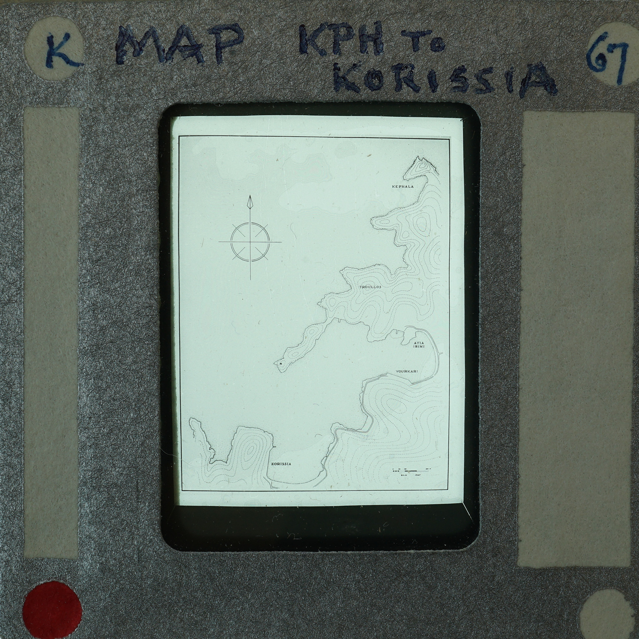 - Frame inscribed: Map KPH To Korissia 67.