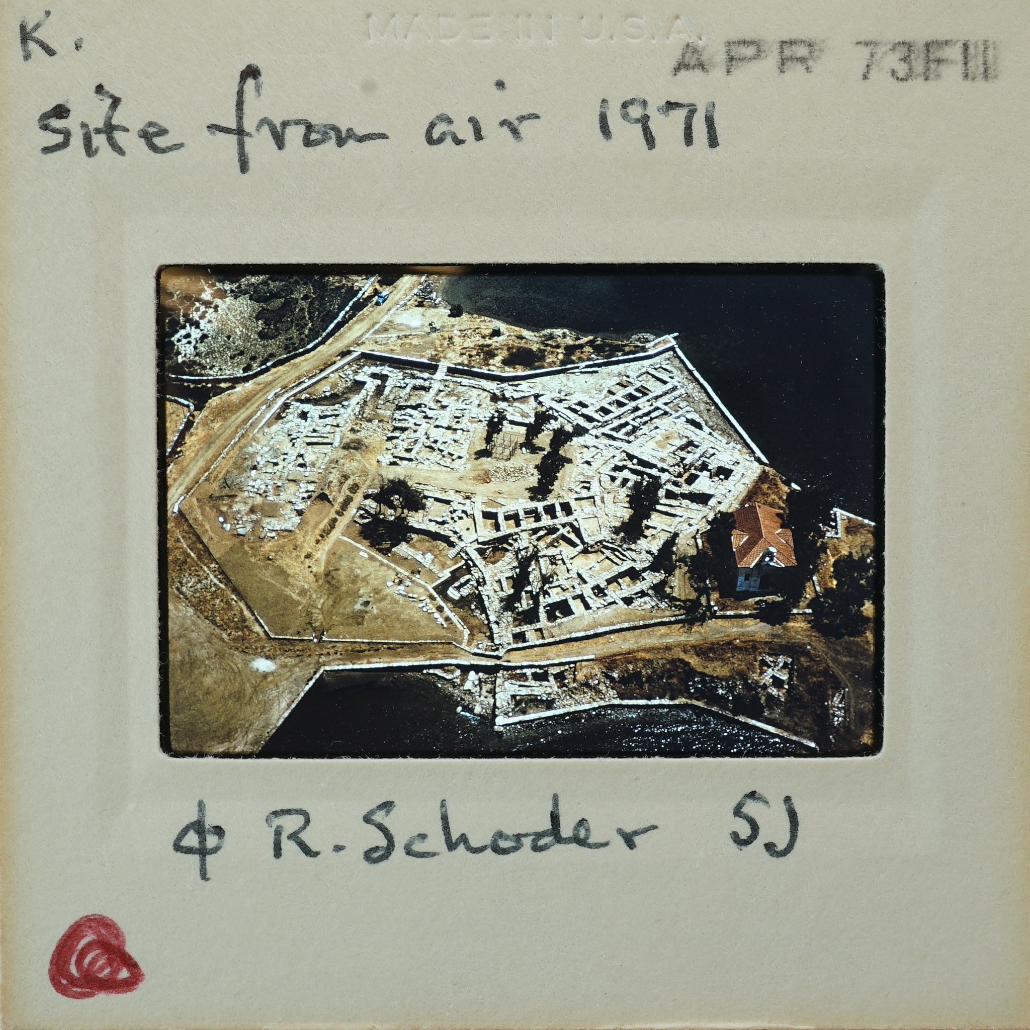 - Frame inscribed: Site From Air 1971 K. R. Schoder 5J.